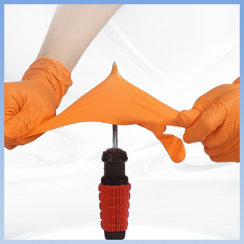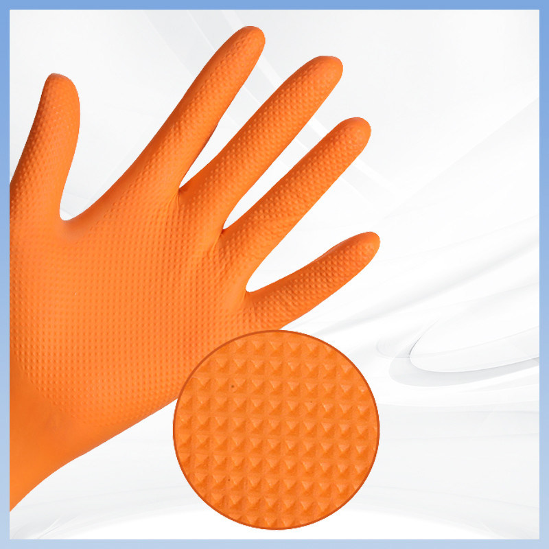 নিষ্পত্তিযোগ্য নাইট্রিল গ্লাভস100 পিসি একটি বক্স 8 মিল ডায়মন্ড টেক্সচারযুক্ত শিল্প রক্ষণাবেক্ষণ মেশিন নাইট্রিল গ্লাভস কমলা কালো নাইট্রিল গ্লাভস